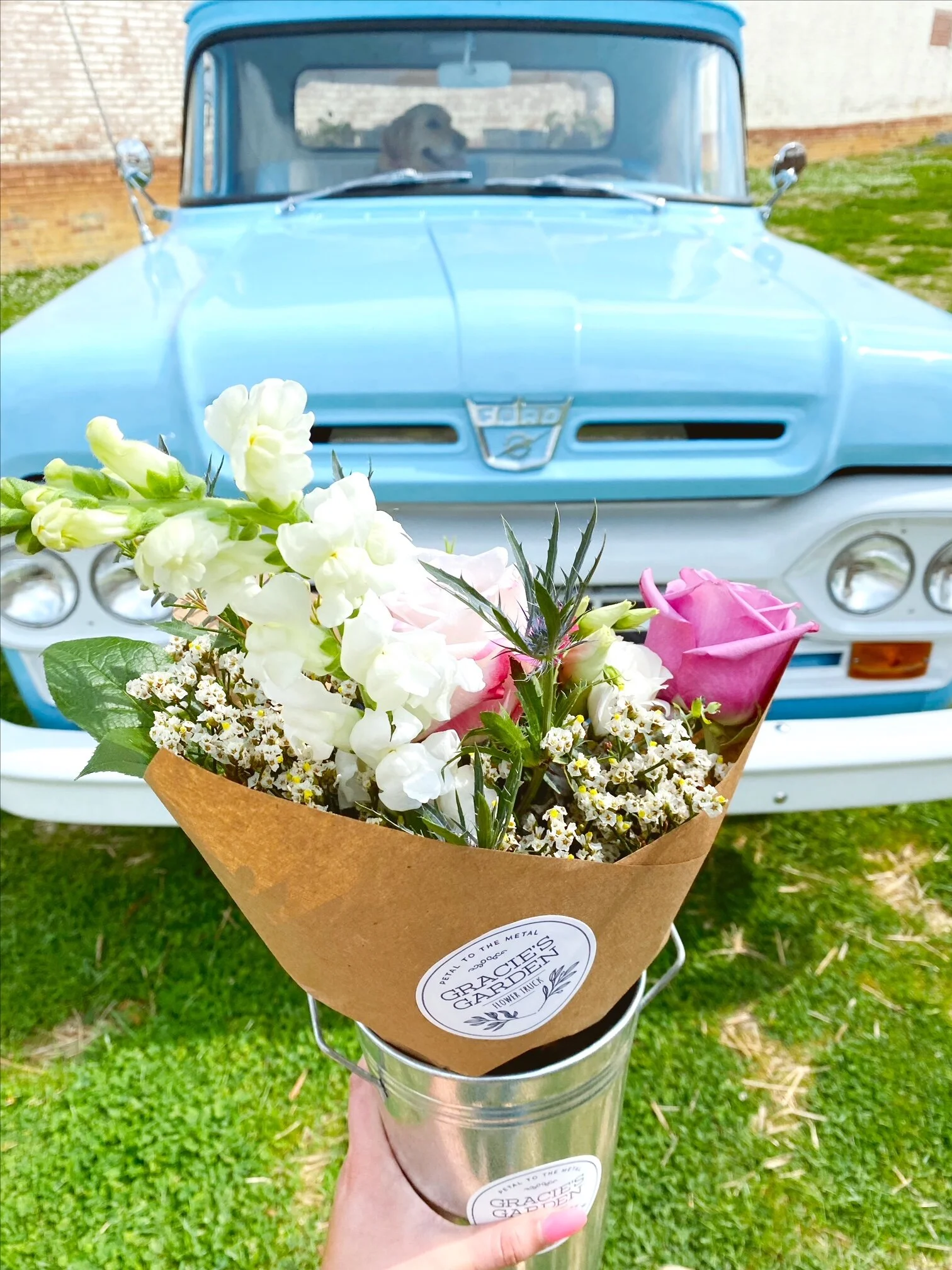 Feature Gracie’s Garden truck, Baby Blue, at your event and give your guests the ultimate party favor - a beautiful, fresh bouquet of local flowers.